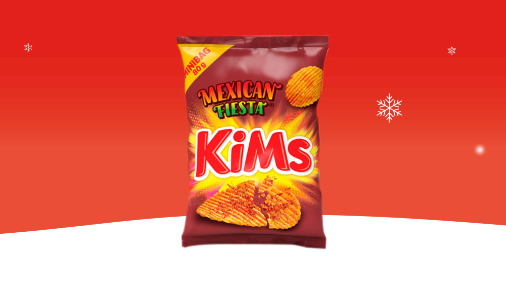 ![]()  - KiMs Mexican Fiesta 30/80g- KiMs Mexican Fiesta er riflet potetchips med en smak av Mexico.