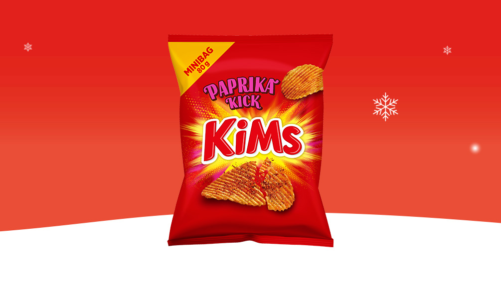 ![]()  - KiMs Paprika Kick 30/80g- En supersprø chips krydret med rik og kraftfull paprika.